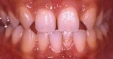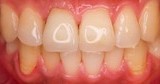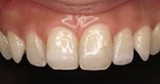 向かって左上一番目の歯はインプラント、右上1番目と左上2番目はコンポジットレジン(保険対応)で審美性と機能性の回復を行っております。